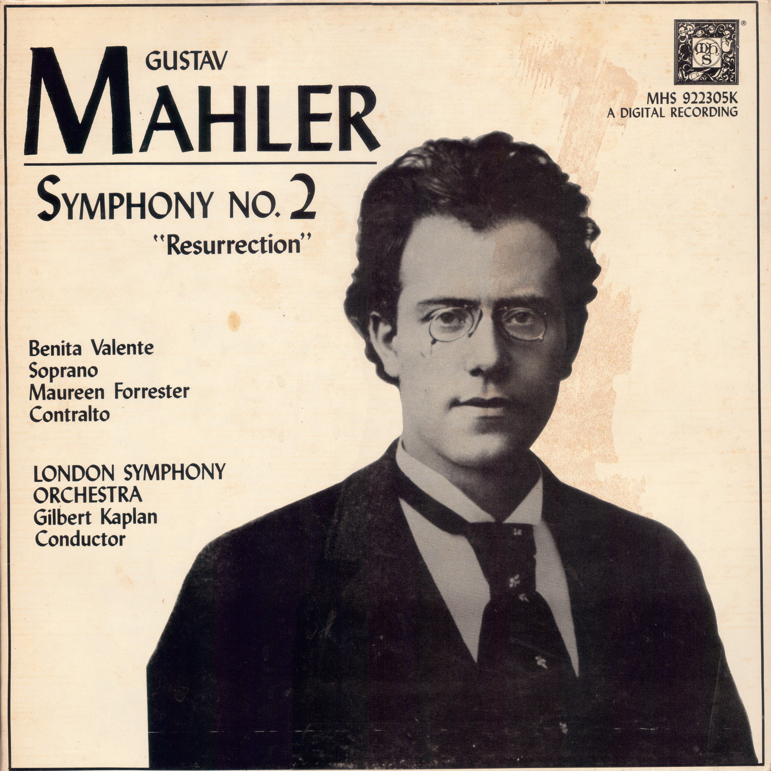 好啦,我知道我有不少朋友擁有卡普蘭的《復活》交響曲的原版黑膠唱片( LP 由 MCA 發行 ),但我就真的從沒在二手唱片行翻到啊( 還有,我聽過卡普蘭現場指揮本曲,只能說專業的事還是交給專業的比較可靠...),後來我無意間買到這套錄音的黑膠,是的,又是 MHS 的授權發行( LP 封面請見下圖 ),不過當時的原版首發是 1988 年,MHS 則晚了一年( 1989 年 ),但現在看來,我還真不在乎晚這一年什麼的就是了。 |